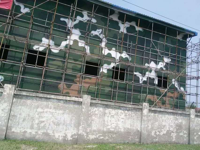 鹽城市澤旭科技有限公司,擁有專業(yè)的迷彩防偽噴涂設(shè)備和施工團(tuán)隊(duì),能承接大型目標(biāo)防偽工程設(shè)計(jì)與施工,小型裝備科技數(shù)碼迷彩噴涂,可以為特種單位提供墻體偽裝設(shè)計(jì)(數(shù)碼迷彩、變形迷彩)施工。本公司為各單位設(shè)計(jì)的各種陣地、塔站、油罐、機(jī)庫(kù)的防偽效果深受各級(jí)領(lǐng)導(dǎo)的一致好評(píng)。